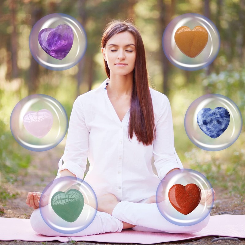 10 Pcs Chakra Stones Healing Crystals Set, Natural Heart Shaped Stones and Crystals Natural Heart Shaped Stones for Reiki Chakra Healing Reiki Meditation Balancing Yoga