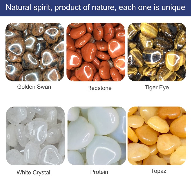 - 【Package Including】: Our healing heart crystals collection includes Fantasy amethyst, pink crystal, red stone, natural blue gold, golden swan, egg white, green aventurine, topaz, tiger eye, and white crystal. High-quality smoothness and ease, which have powerful energy, suitable for enhancing meditation, and with the function of helping the physical and mental healing.