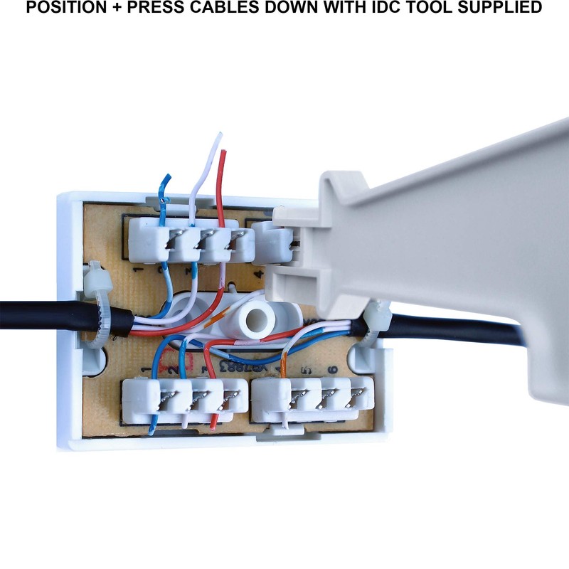 - INSULATION DISPLACEMENT - There is no need to strip the internal conductors as a connection is made automatically when the internal wires are pressed into their seated position using the IDC tool supplied