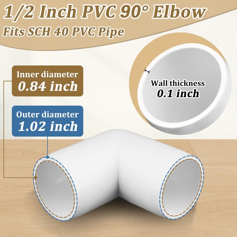 - Size: Includes 20 pieces of 1/2" PVC 90 Degree Elbow Fittings for SCH40 1/2" PVC pipes. Ideal for your next creative PVC project