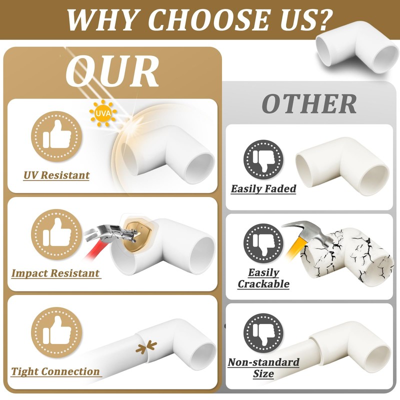 - Furniture-Grade Quality: Crafted from premium PVC, the furniture-grade 90 degree elbow PVC fittings easily handle heavier weights. Exceptional UV resistance, impact durability, and corrosion protection, ensuring long-lasting performance in harsh environments