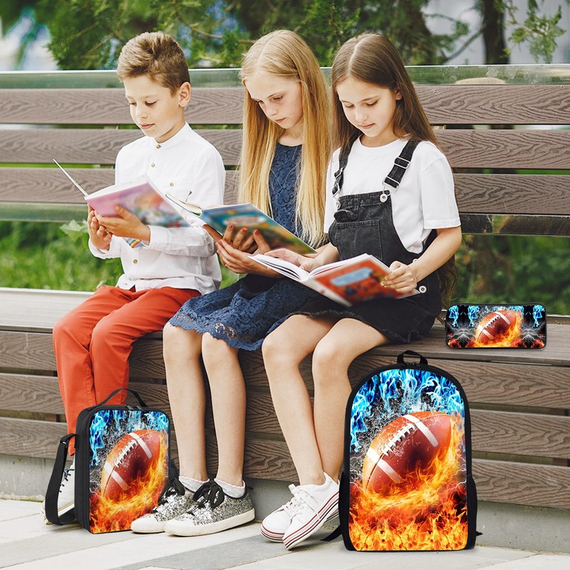 3PCS Backpack for Boys Girls Kids School Backpack Sets with Lunch Bag Pencil Case, 17 Inch Lightweight Bookpack 3 in 1 Set for Teens Elementary Middle HighSchool Students (Football)