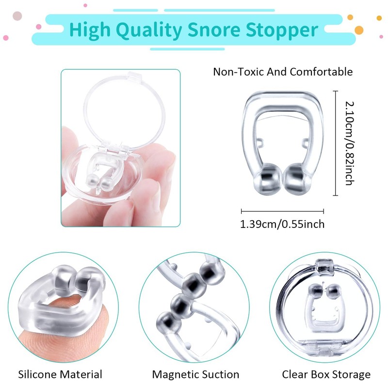 - 【Quality Assurance】The outer shell of the anti snoring device is made of silicone, which is non-toxic and will not affect your body. The magnetic suction inside applies pressure to your nasal septum to facilitate the release of your airway, guarding your health in a sensible way.