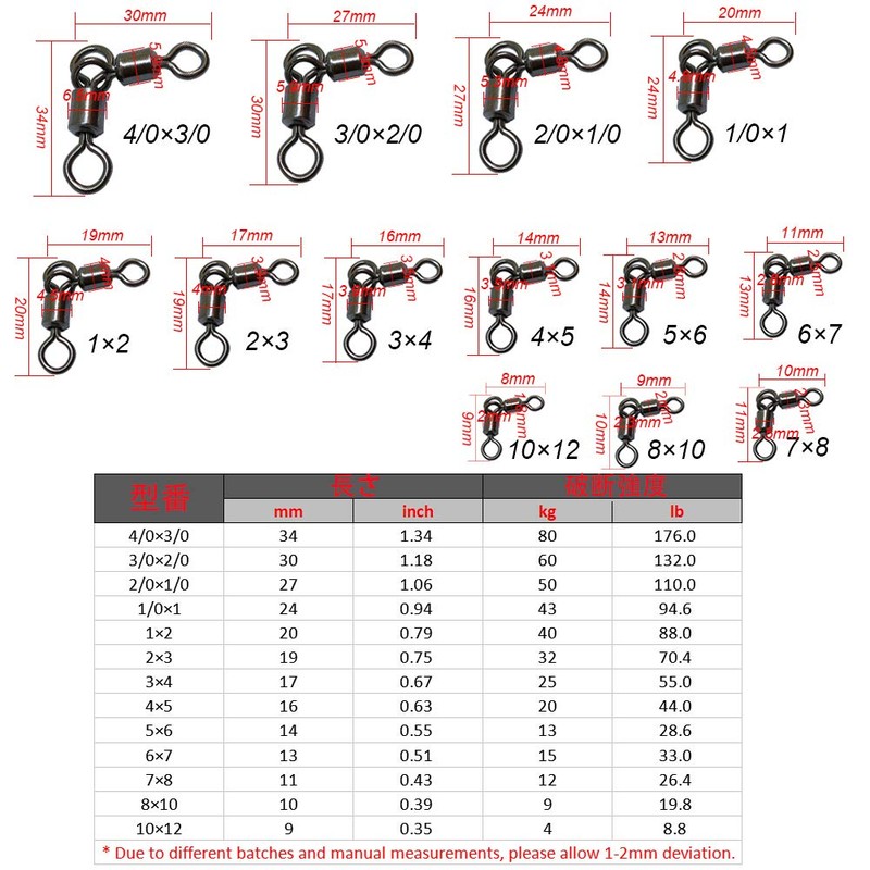 50 Pieces/Bag 3-Way Fishing Swivels, Parent-child Salcan, Value, Trimatted Sarkan, Snap Sarkan Lure, High Strength, Corrosion Resistant, Stainless Steel Copper Alloy Fishing Salkan (2/0 x 1/0#, Length: 10.0 inches (27 mm), Breaking Strength: 110.2 lbs (5