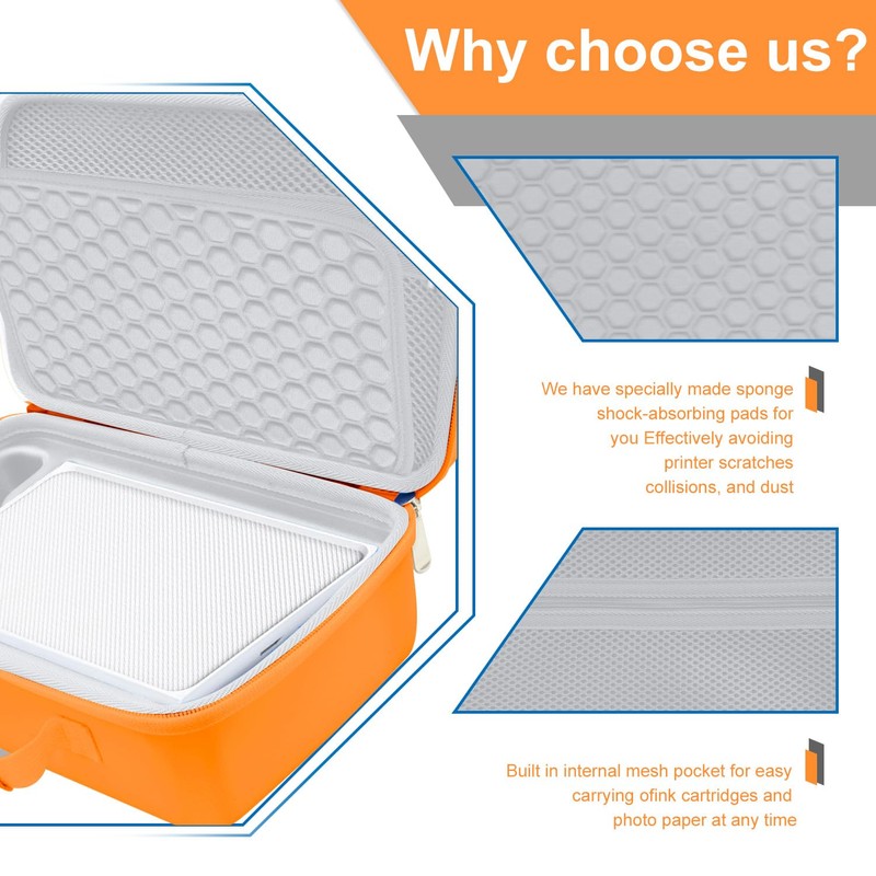 - The exterior of the photo printer case is crafted from a combination of EVA and Nylon materials, offering exceptional durability and resistance to wear and tear. This robust construction provides reliable protection for your Liene 4x6'' photo printer, even in challenging environments