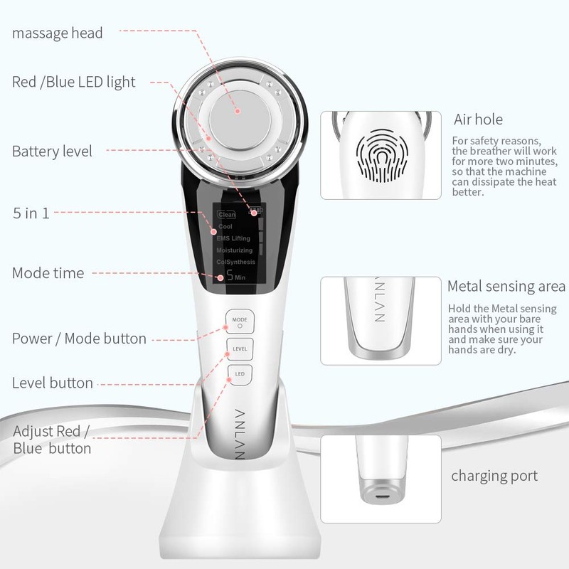 ANLAN Kosmetisches Gerät Faltenentferner Gesichtsmassagegerät mit ION- und Heiße/Kühle Behandlung für Gesichtpflege Gesichtslifting Tiefenreinigung Anti Falten Anti-aging mit EMS Mikrostrom
