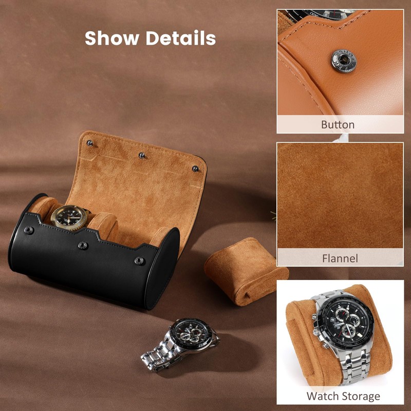 - Plenty of space: the watch roll can hold 2 watches, the inner lining of the watch roll is wide enough to accommodate any watch model, and the watches in the watch roll are easy to reach