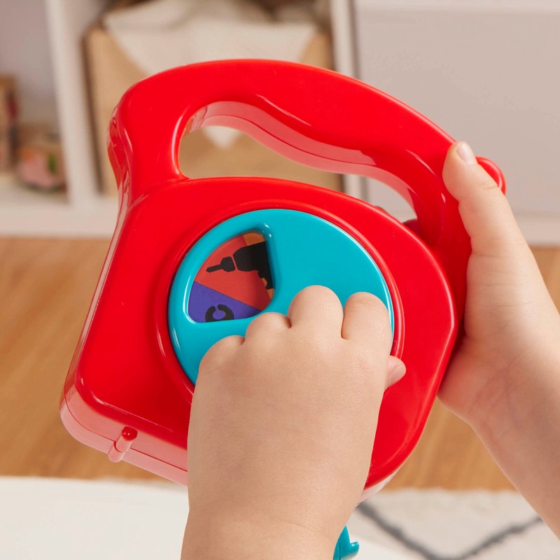 - Features: pull to measure and reel the tape back in; a colourful carousel lets kids discover different tools