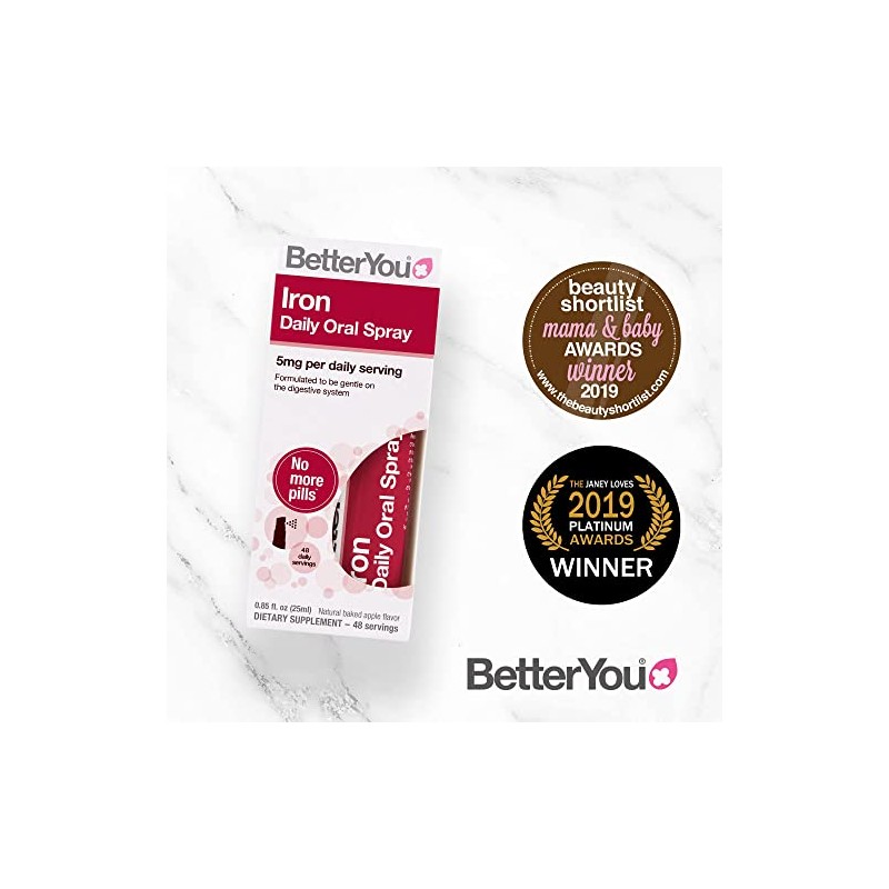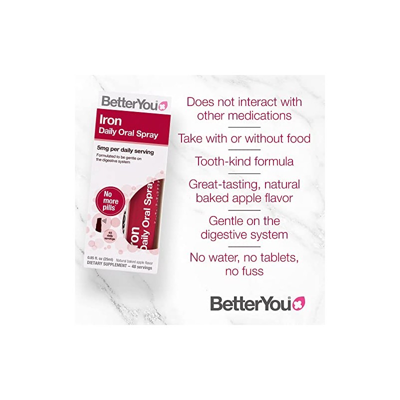BetterYou Iron Daily Oral Spray - Convenient Alternative for Tablets - Gentle on Digestive System - Reduces Tiredness, Supports Brain Function and Immune System - Natural Apple Flavor - 0.84 oz
