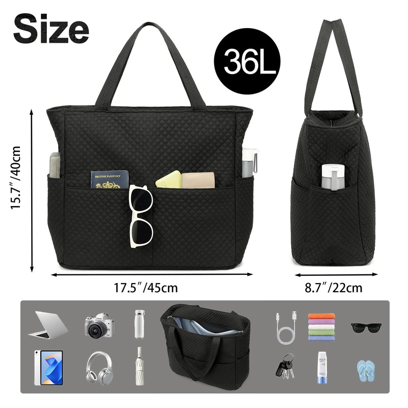 Bluboon Large Tote Bag for Women, Checkered Quilted with Wet Pocket Zipper Gym, Work, Pool, Travel Bag