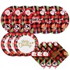 Christmas Plate Napkin Disposable Gingham Checkered Pattern Buffalo Plaid wit...