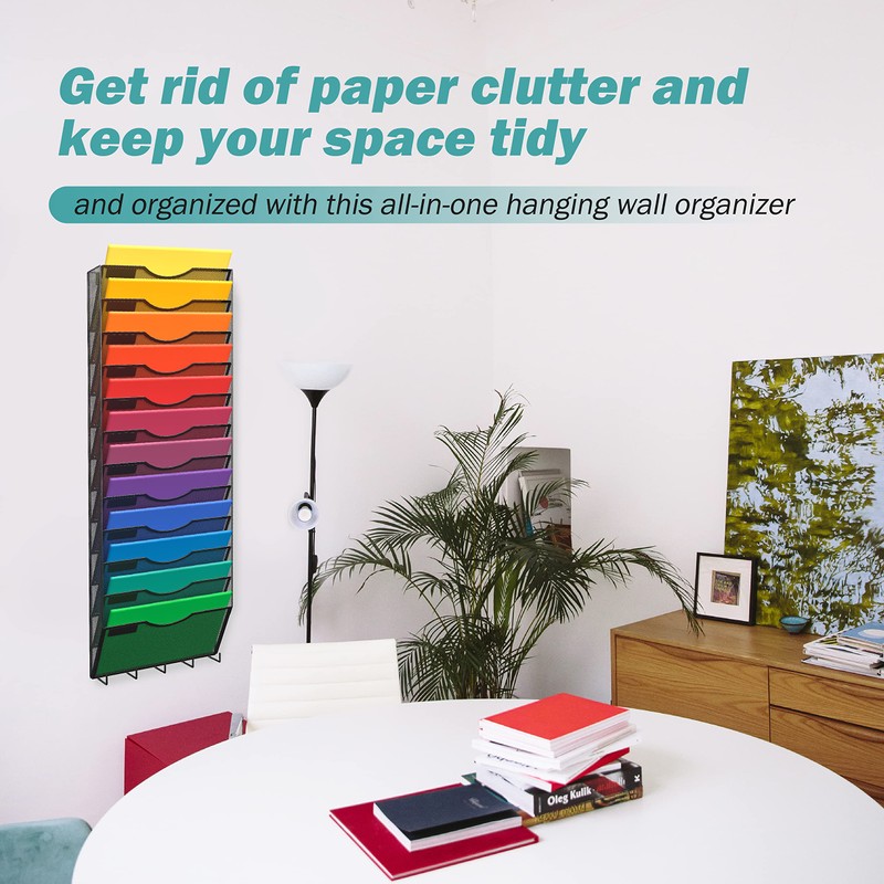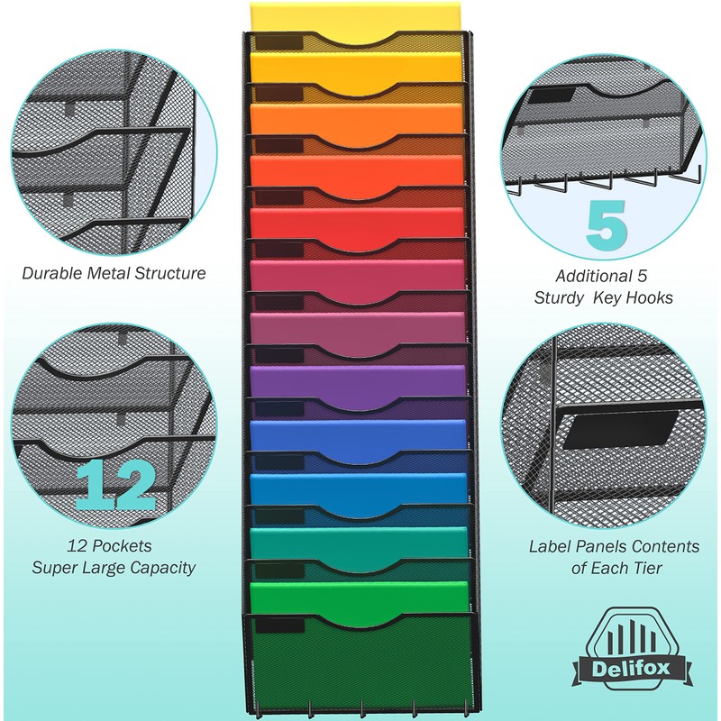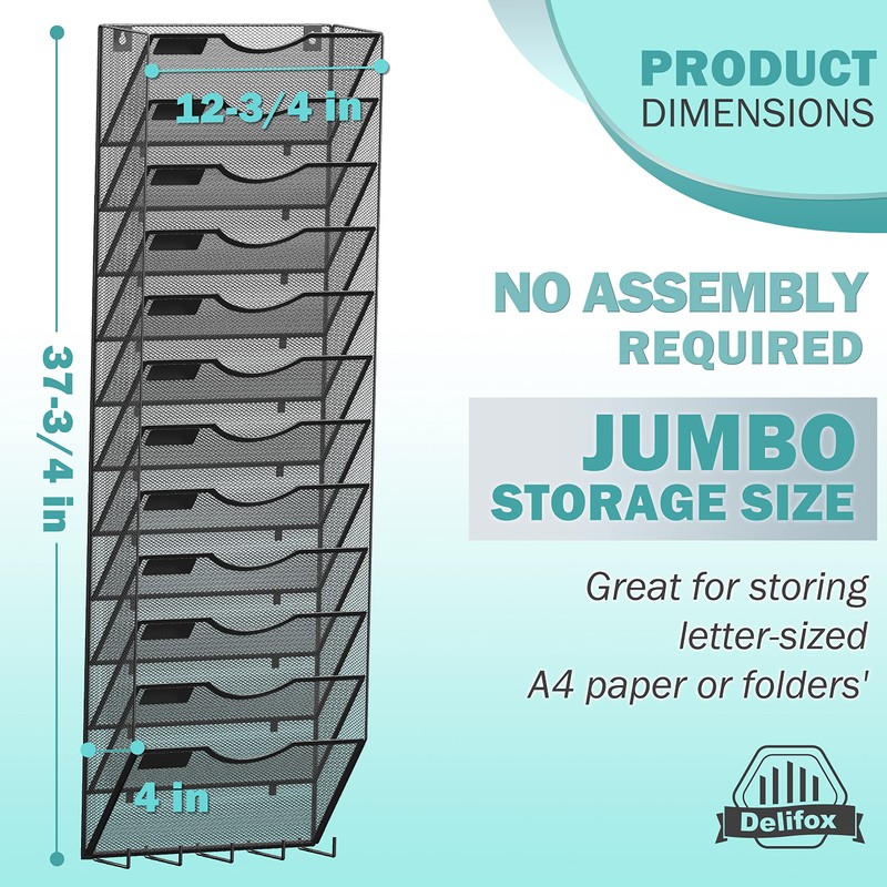 Delifox 12-Tier Wall Mounted Hanging File Organizer Metal Mesh File Document Holder Magazine Rack Multipurpose Use for Files, Magazine, Newspapers (12 TIER)