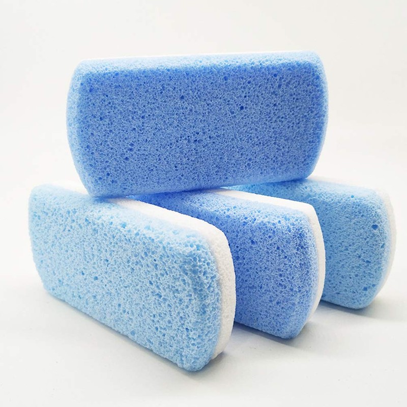 - The double-sided pumice stone is mainly made of foam glass and is said to facilitate exfoliation. It does not fall as easily as other foam pumice stones. Better effect, less fragment.