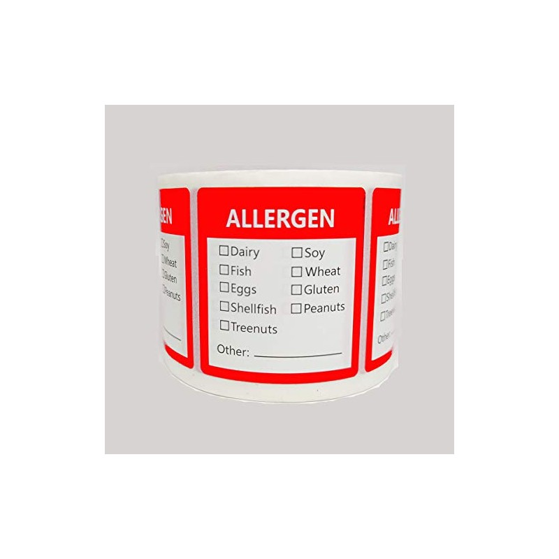 - ❤Allergen Warning Stickers size is 1.8 X 2 inch, Totally 500 adhesive food rotation labels per roll.