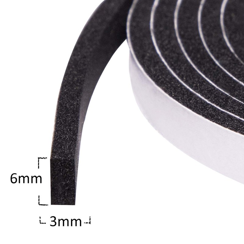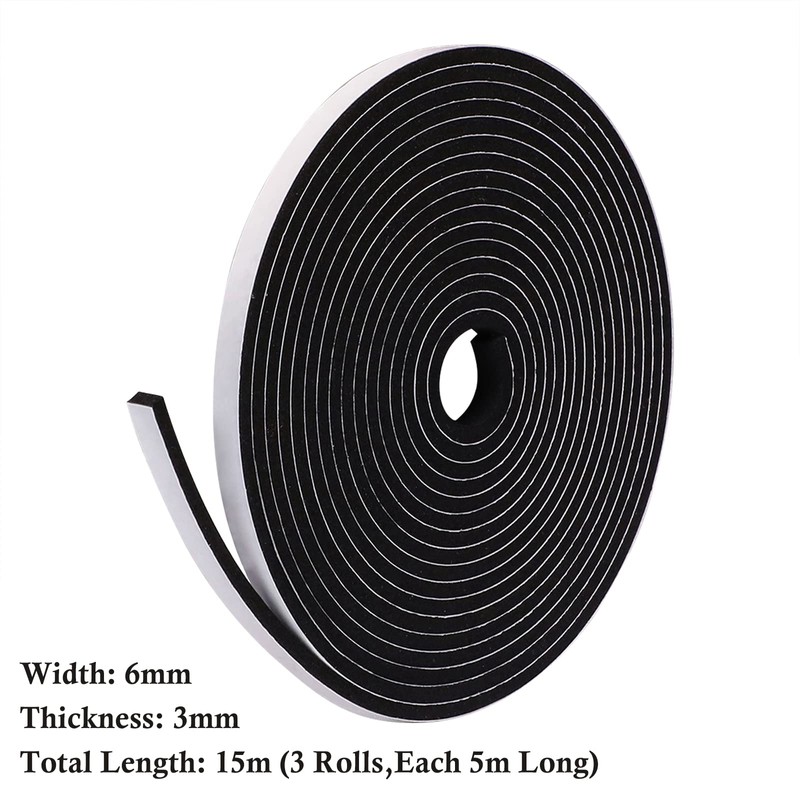 • STRONG ADHESIVE - 6mm (W) * 3mm (T) * 15M (L) Foam weather stripping has strong adhesive backing, moisture resistant and non-degumming, stick firmly, great weather stripping for doors and windows