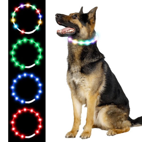 - 4 Illumination Modes & 4 Colors Available: The latest 2022 LED collar has been improved to 4 luminous modes based on the traditional 3 lighting modes. You can choose from 4 kinds of lighting patterns: flash, fast flash, slow flash, and light up. Also, there are 4 different colors of the collar that you can choose from the color you like