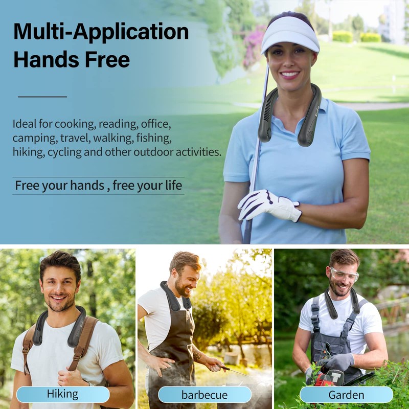 - 🌀 🌀New and cool design: The shape of the headset makes the mini fans lead the fashion trend.What more,Adjustable fan will not damage your hairstyle during wearing.At the same time,neck fans without blades will not catch your hair! Keep your elegance in the hot day!