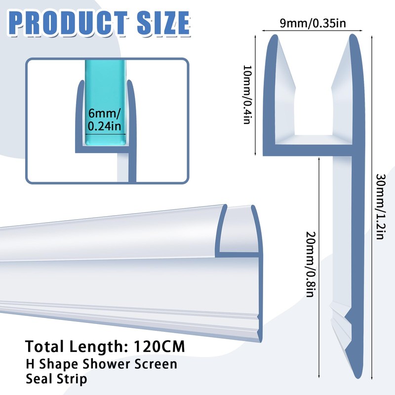 • UNIVERSAL AND CUSTOMIZABLE FIT: Each package contains two 120cm seals for glass doors with a thickness of 6mm, and the waterproof barrier is extended up to 10mm. The strips can be easily trimmed to fit a variety of shower door sizes using a simple cutter, allowing you to achieve a precise fit and maximum effect.