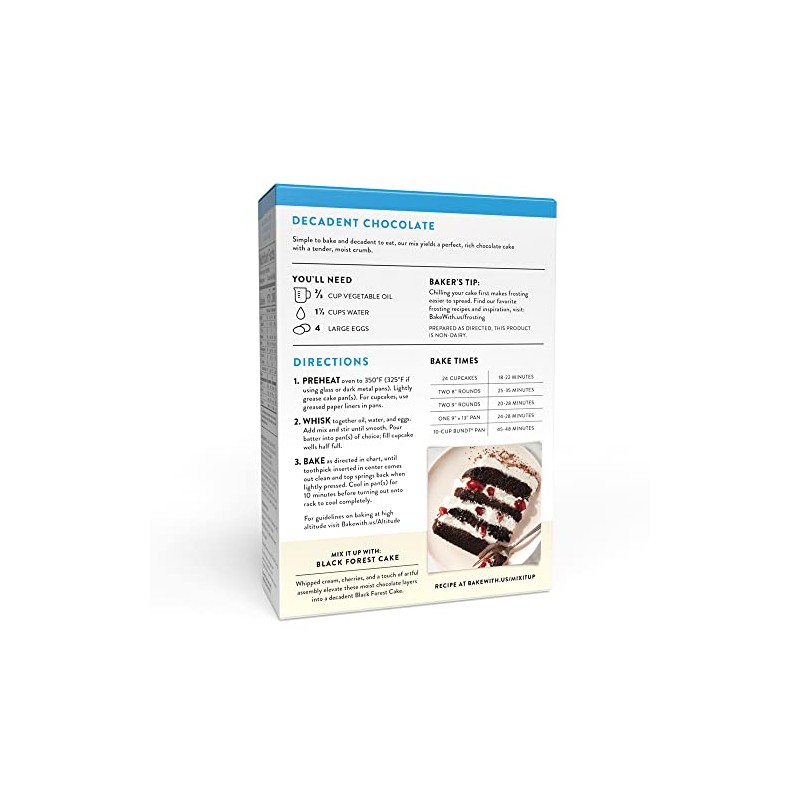 King Arthur, Gluten-Free Chocolate Cake Mix, Gluten-Free, Non-GMO Project Verified, Certified Kosher, Non-Dairy, 22 Ounces