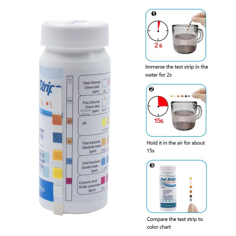- Application: Water test strips is suitable for testing all water sources including drinking water, aquariums, swimming pools and spad, industrial water, hot tubs, etc