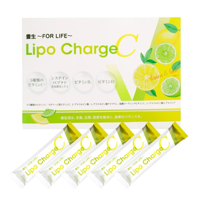 [豊生] Lipo Charge C 5袋入 リポチャージC 5包 5日分 リポソーム リポソームビタミンC ビタミンC誘導体 顆粒 レモン ライム 5種類 持続型 システインペプチド含有酵母エキス ビタミンD 美容 サプリ 国内製造 (5日分)