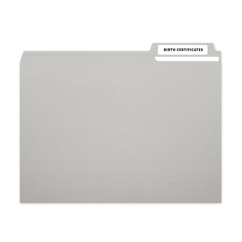 - White; filing labels sized for 1/3-cut file folders (2/3"W x 3-4/9"L)