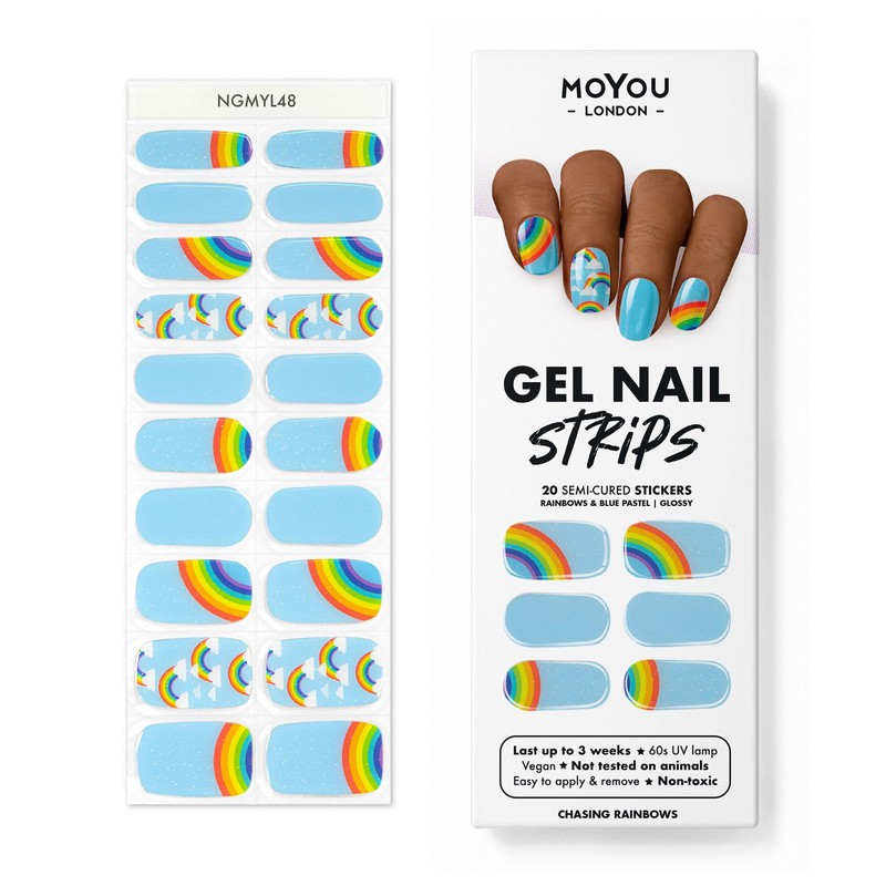 MOYOU LONDON Semi-cured UV Gel Strips - Pack of 20 - Gel Nail Foils UV Hardening for Salon Quality Manicure - Chasing Rainbows