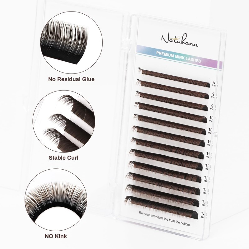 NATUHANA Colored Eyelash Extensions 0.07mm L Curl 8-14mm Mixed Length Tray, Premium Individual Easy Fan Lashes Volume, Professional Supplies for Lash Techs(Black+Brown,0.07 L,8-14 MIX)