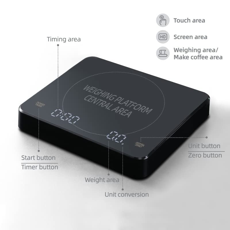 - 📖Designed For Coffee Enthusiasts: Our digital coffee scales feature a built-in timer and tare function. Helps you better control extraction time and weight, and enjoy the aroma of coffee. Suitable for espresso and pour-over.