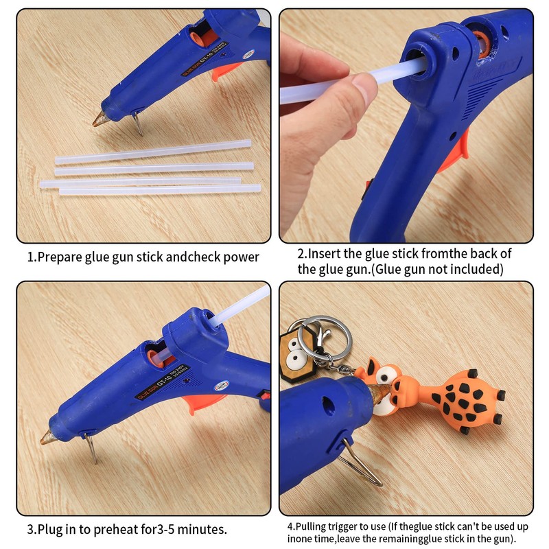 - Easy to use: it melts quickly for easy use. It is recommended to heat for 3-5 minutes; during the working process of the glue gun, keep your mouth down, turn off the power supply in time when not in use.