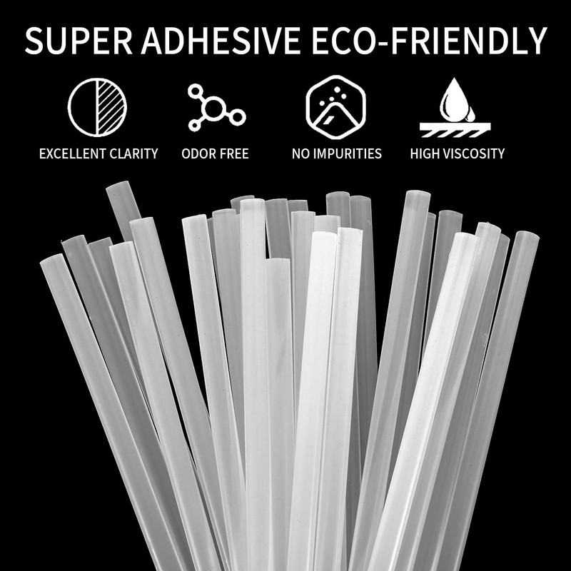 - đăPremium Materială: The hot glue sticks are made of environmentally friendly EVA material with high viscosity, which is non-toxic, odourless, elastic quality when dry, prevents breakage due to brittleness.