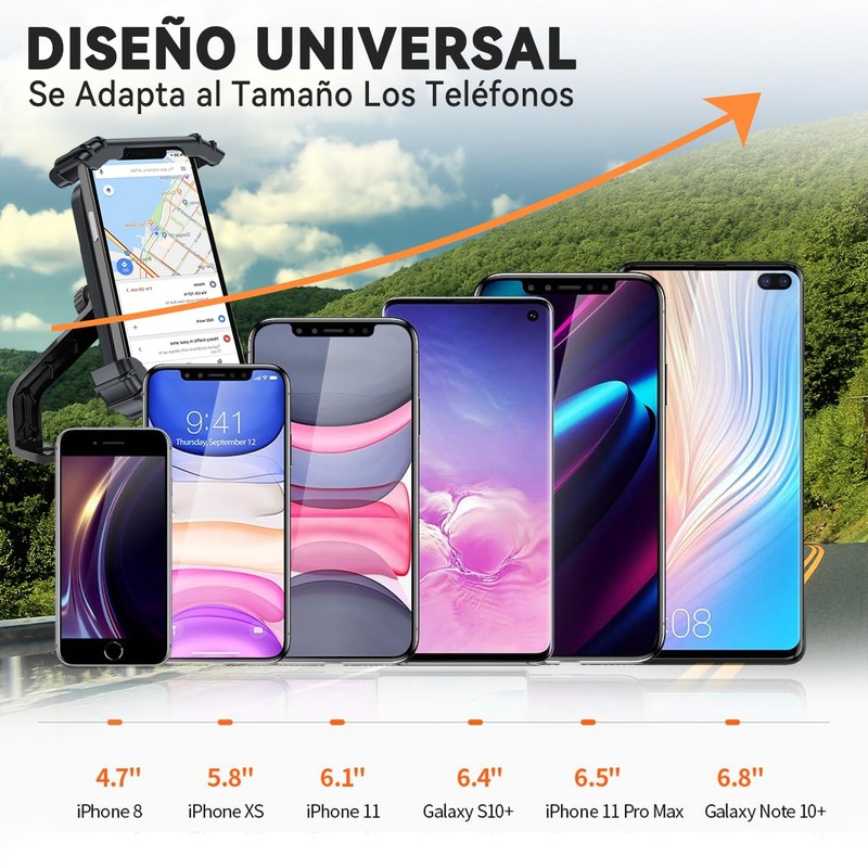 - 【PROTECCIÓN EN TODAS PARTES】Las cuatro esquinas y la parte posterior del porta celulares para moto están todas equipadas con almohadillas de silicona antideslizantes, evitan que su teléfono móvil se raye y se deslice. Ayude a sostener su teléfono inteligente firmemente, manteniendo su teléfono seguro y estable incluso en carreteras difíciles.