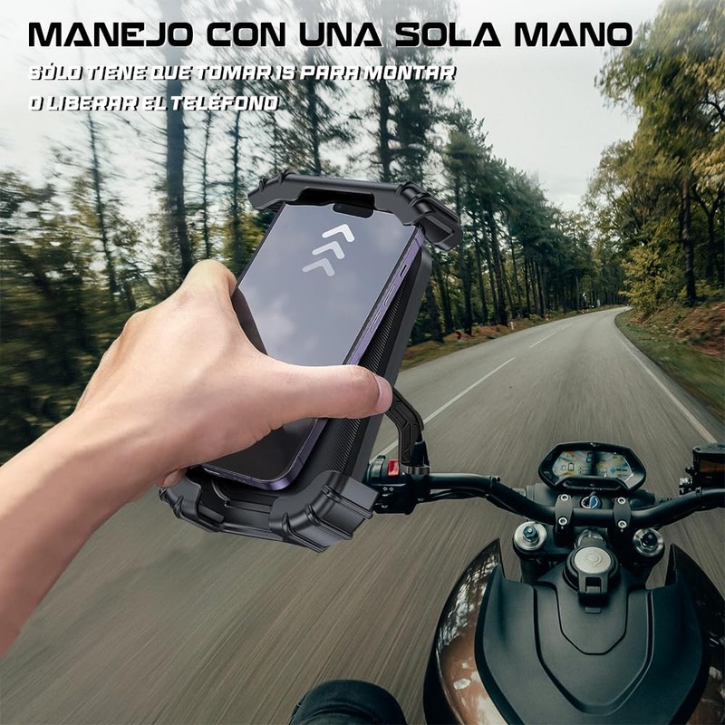 - 【CON UNA SOLA MANO】Monte el celular en el soporte del bicicleta con una mano, luego suéltelo y el celular se sujetará automáticamente. El diseño único de este soporte sujetará el celulares con fuerza, evitará que se caiga mientras conduce, incluso en carreteras con baches.