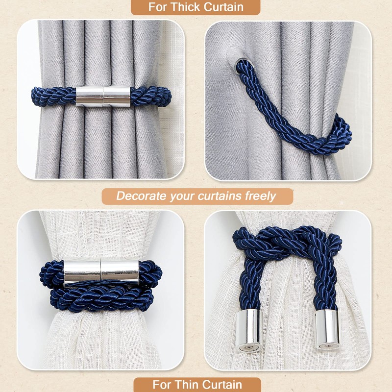 - 【WIDE APPLICATION】The total length of our magnetic curtain straps is 19 inches. The length and binding method can be adjusted freely according to the thickness of the curtain. It is widely used in curtains in different places such as bedroom, living room, dining room, bathroom, kitchen, office, courtyard and so on. Different colors of magnetic drape tiebacks adorn your curtains, which can change different styles, giving the curtains a unique charm