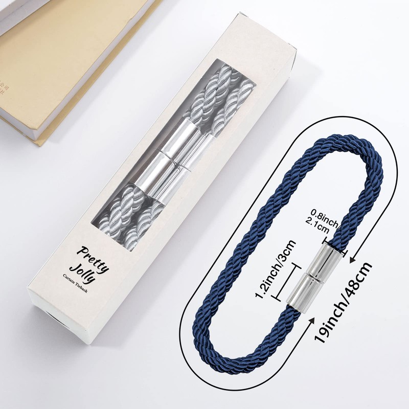 - 【PREMIUM MATERIAL】Pretty Jolly magnetic curtain tie backs use an upgraded version of nickel-plated magnets, which are strong, smooth, and rust-resistant, and will not fall after buckling the curtain. The brightly colored decorative braided rope is hand-woven with premium polyester cotton materials. The silk thread has high strength, strong toughness, is not easy to fall off,wear or pilling, adding a modern beauty to your windows