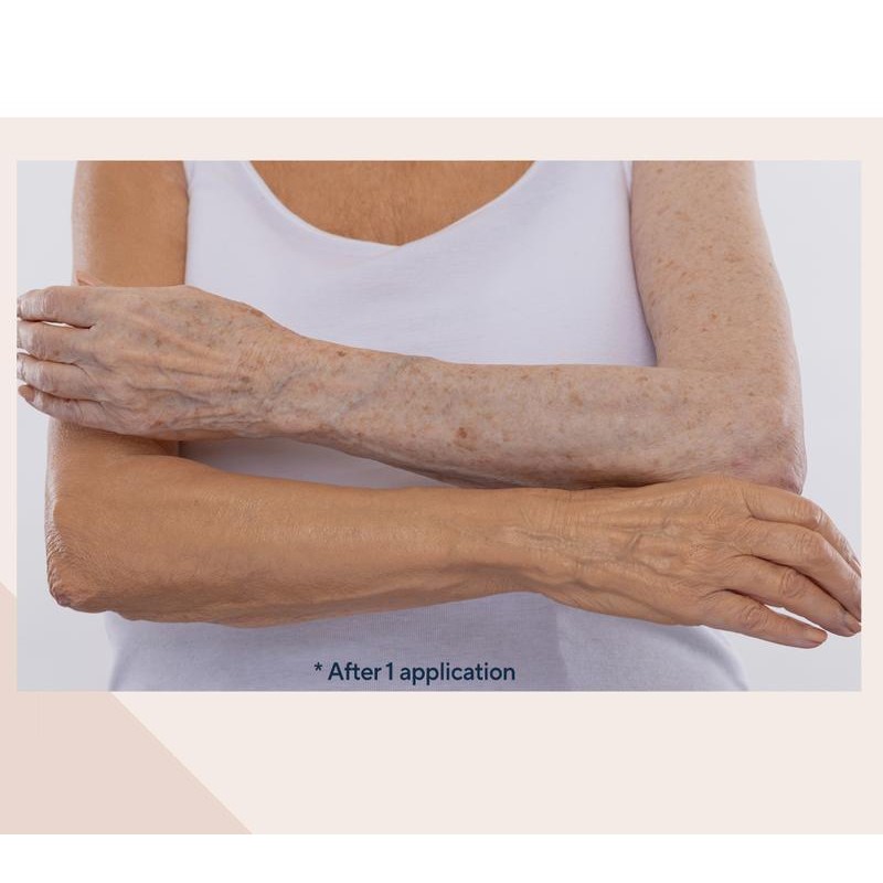 Dr. Denese Glow Younger Body Concealer instantly and temporarily covers and camouflages skin imperfections, including sunspots, freckles, age spots, veins, bruises, scars, discolorations, blemishes, and ruddy and uneven skin tone. The concealer contains a moisturizer known to temporarily hydrate and moisturize for silky, soft-feeling skin. How do I use it: Shake well prior to use. Apply thin even layer to body surface, reapply for additional coverage, if needed. Allow to dry before getting dressed. Wash hands after application. From Dr. Denese. Includes: