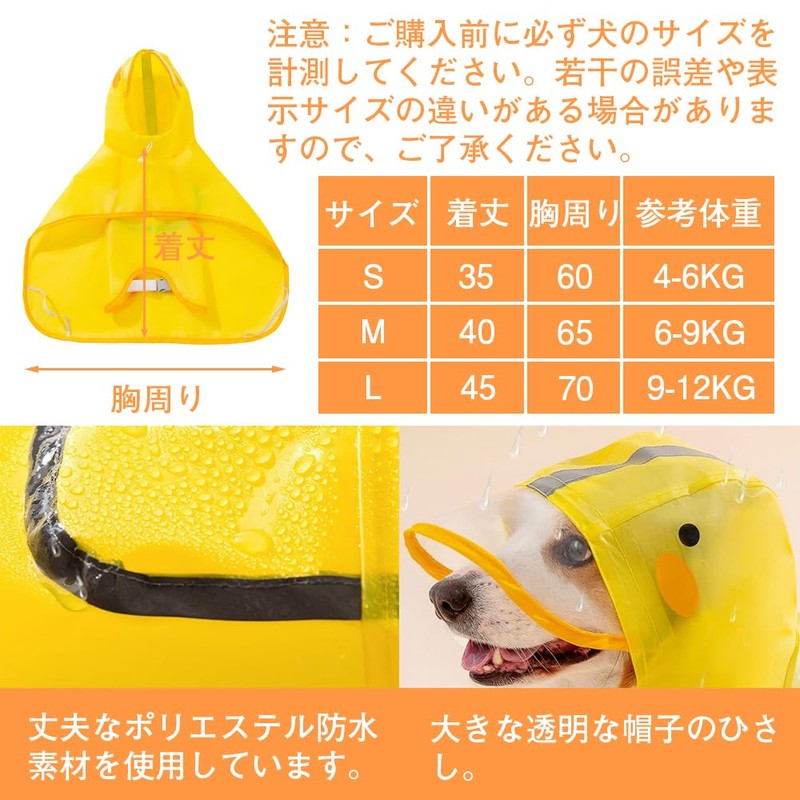 Rainwear for Dogs, Raincoat, Hooded, Stomach Cover, Harness Included, Adjustable Elastic Included, Small Duck Cape, Poncho, Easy to Put on and Take Off, No Constriction on Legs, Cute, Cold Protection,