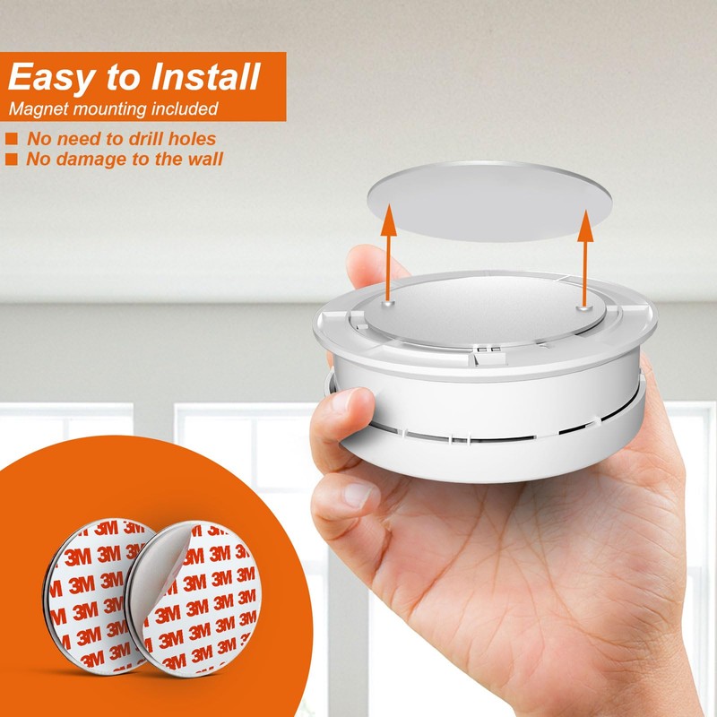 Ruan Photoelectric Smoke Alarm With 10 Years Life Passed the EN14064 Standard Magnetic Smoke Detector Mount Magnet Smoke Detector with Test Button 2 Pack