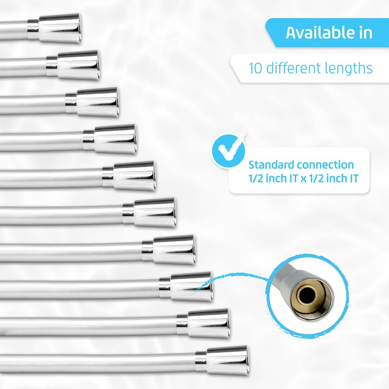 - 🚿 STABLE, LIGHT, FLEXIBLE - The three most important properties of a shower hose come together here. Our kink protection makes the most common reason for complaints disappear forever. Our most modern materials are extra light and flexible. Convince yourself!