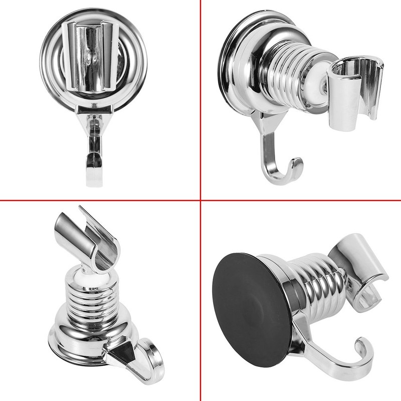 Made of high quality ABS and rubber material, eco-friendly, durable and sturdy to use.Good workmanship of 360 degree adjustable design, convenient to use.Wall mounted, coming with an attached sucker, easy to install and not easy to fall down.It also has a towel hook, practical to use.Reasonable size and lightweight, suitable for most of shower head.