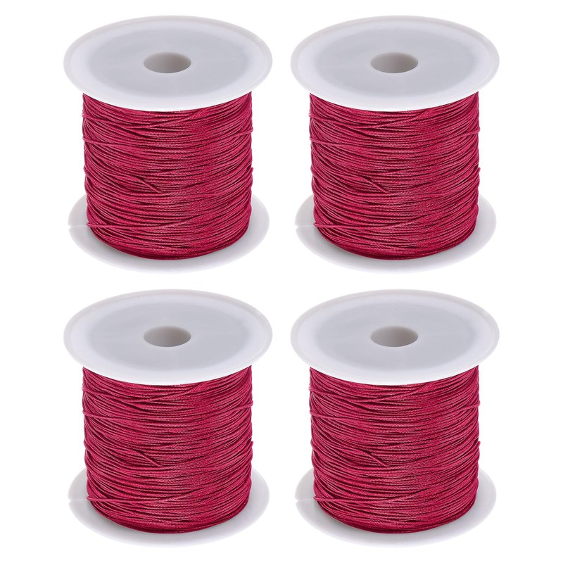 sourcing map 4 Rolls Nylon String Cord 45 Yards 0.4mm Nylon Cord Beading Satin String for Jewelry Making Chinese Knotting Cord Necklaces Kumihimo Friendship Bracelets and Craft, Date Red