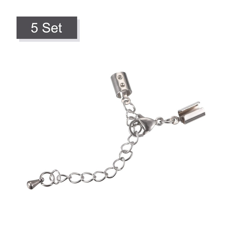 5Sets x Cord End Crimp Tips with Lobster Claw Clasps & Extension Chain