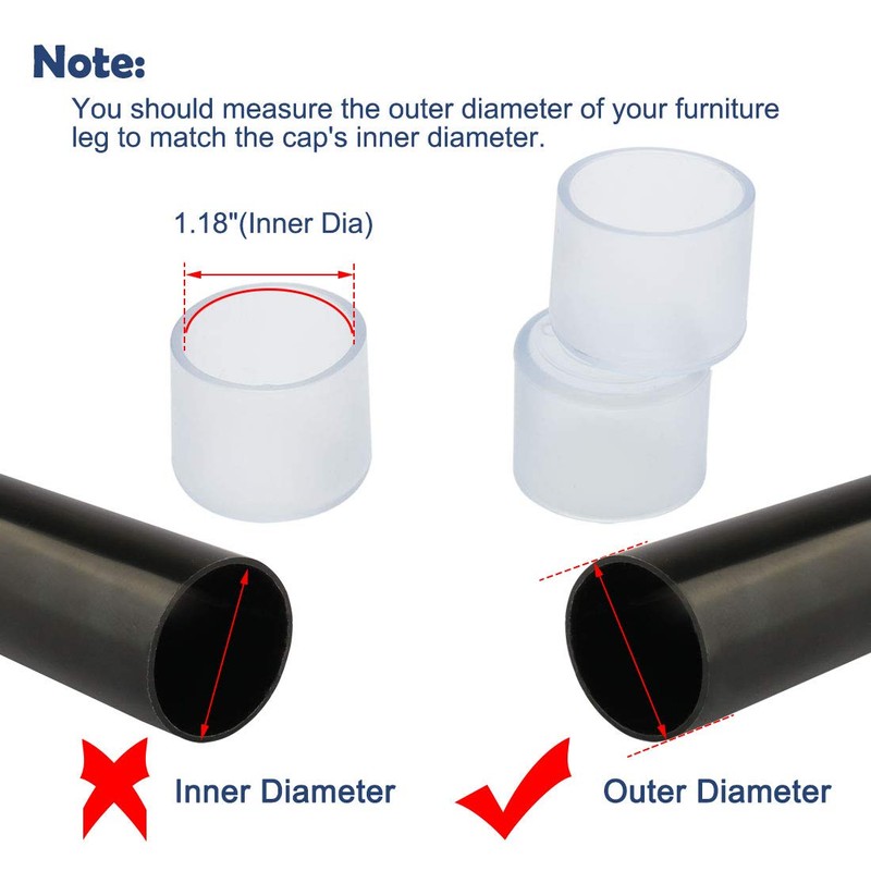 - Material: PVC; Total Size: 34 x 28mm/1.33" x 1.1"(D*H); Inner Diameter: 30mm/1.18"; Package Include: 14 x Leg Caps; this leg cap suitable for 30mm-32mm/1.18 Inch-1.26 Inch diameter leg