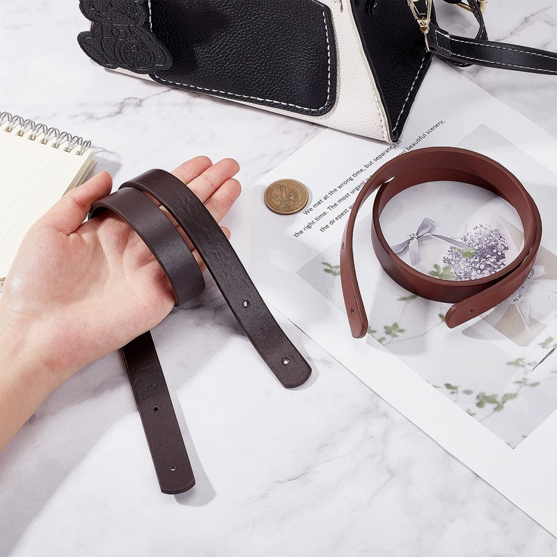 SUPERFINDINGS 4Pcs 2 Colors Faux Leather Bag Handles with Iron Rivets 60x1.85cm PU Leather Bag Strap Replacement Sienna and Coconut Brown Handbag Handle Belt for Bag Making Supplies, Hole: 3mm
