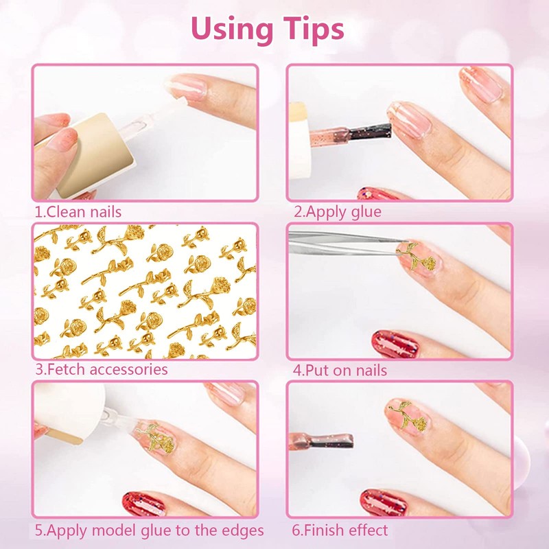 - 【Using Suggestions】 Use tools to put your favorite rose alloy charm nail ornament on your nails with a little glue or nail gel, fix it with UV or LED light, and finally apply a layer of nail gel to get Better protection and long-lasting color effects