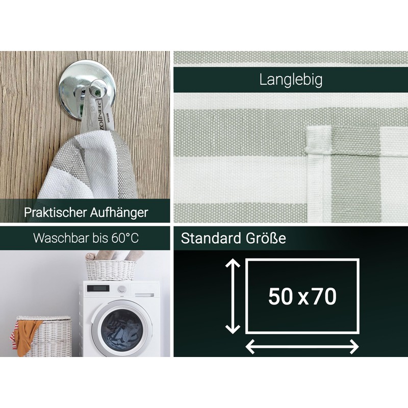 Advantages with the tea towel set from Zollner:High quality: 100% cotton absorbent and lint-free.