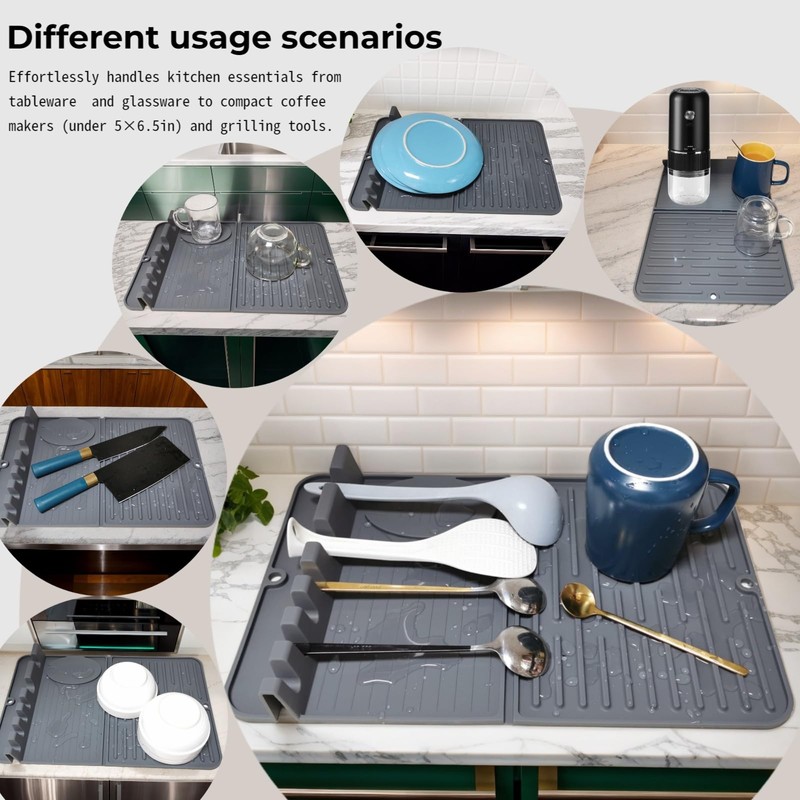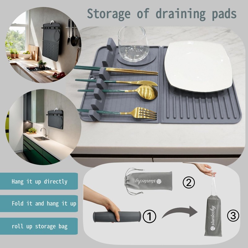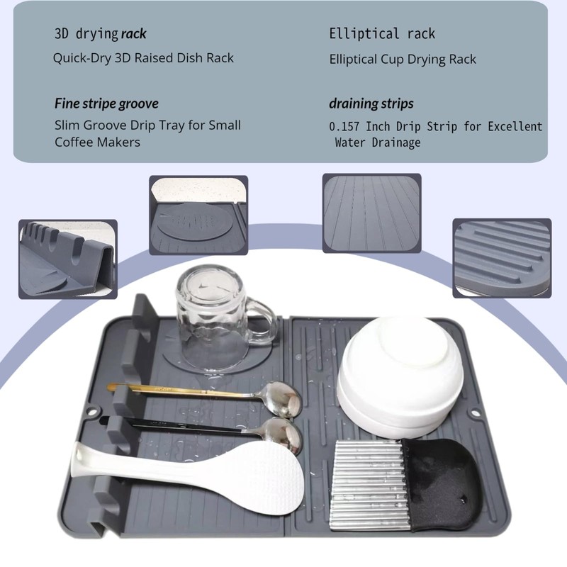 - Efficient Drainage Solution: Featuring raised draining ridges and a 3D drying structure, this product accelerates water runoff and promotes air circulation. Dishes, utensils, and cookware dry faster