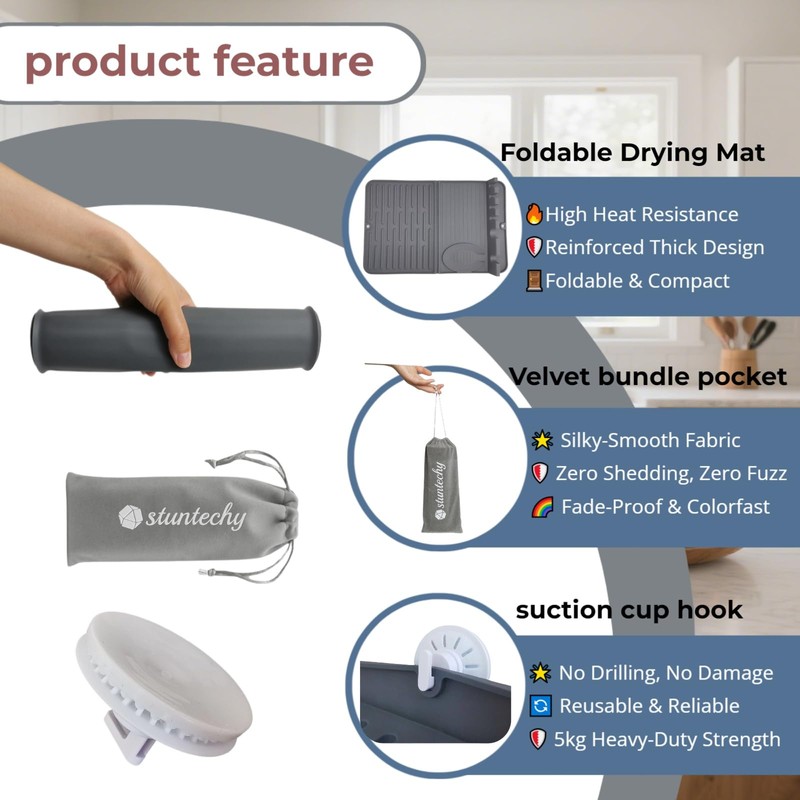 - 3-in-1 Versatility: Use it as a dish drying mat, countertop guard, or even as a heat-resistant surface for outdoor cooking. Its multi-purpose design makes it an all-in-one tool for everyday tasks and on-the-go activities