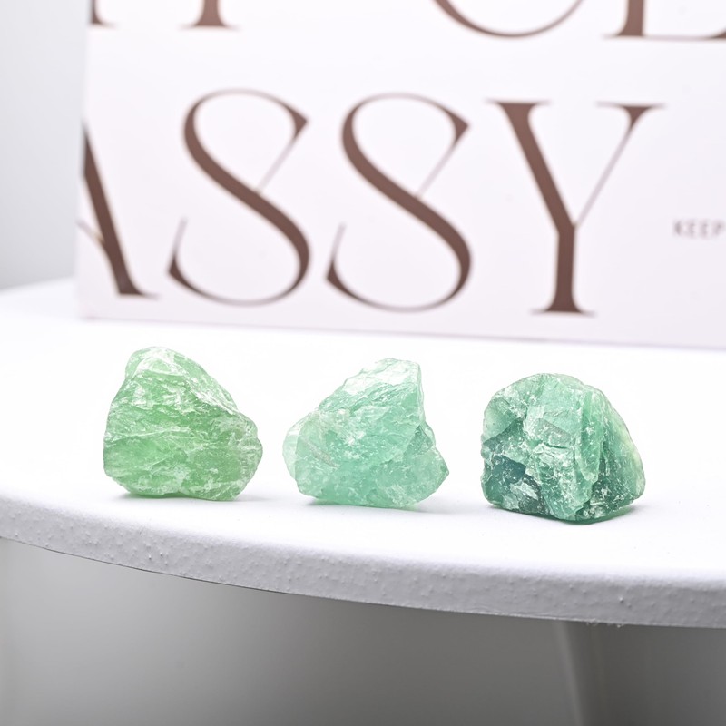 - The raw stone set includes 400g Green Fluorite, the quantity is approximately 7 to 9pcs rough stones. The size, shape and importance of each raw stone are different