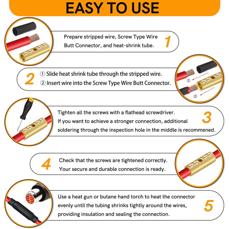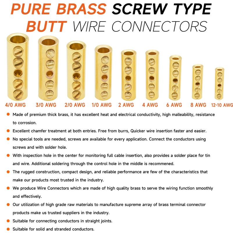0 Gauge Wire Butt Connectors 6 PCS Brass Mechanical Butt Splice Connectors Kit 1/0 AWG Mechanical Repair Splice Kit Splice Screw Sleeves 6 PCS Mechanical Splices & 3:1 Heat Shrink Tubes
